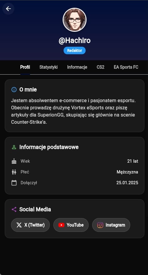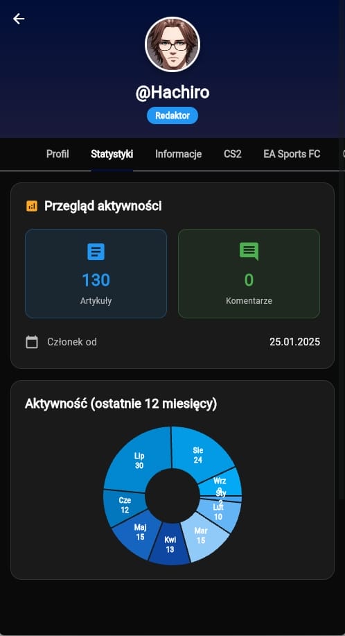 W poprzednim artykule (https://superiongg.com/apk-1-widok-profilu/) pisaliśmy o zmianie widoku profilu na naszej stronie. O ile wtedy mieliśmy na myśli widok profilu na urządzeniach mobilnych w przeglądarce oraz urządzeniach desktopowych, tak ostatnie dni spędziliśmy na zaimplementowanie tego widoku w naszej aplikacji, choć jest troszkę inny. Z racji na problemy z .pl, chwilowo profilówki nie są wyświetlane prawidłowo.