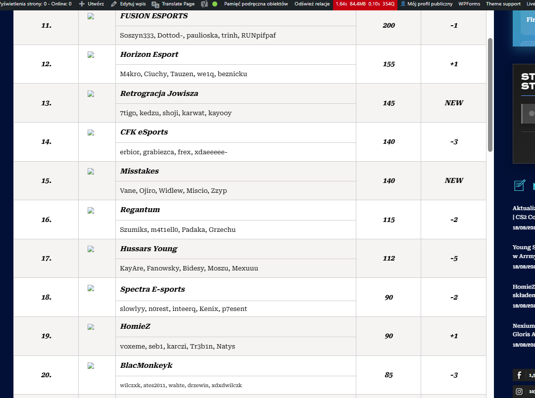 6. Aktualizacja rankingu Polskiego Podziemia CS2