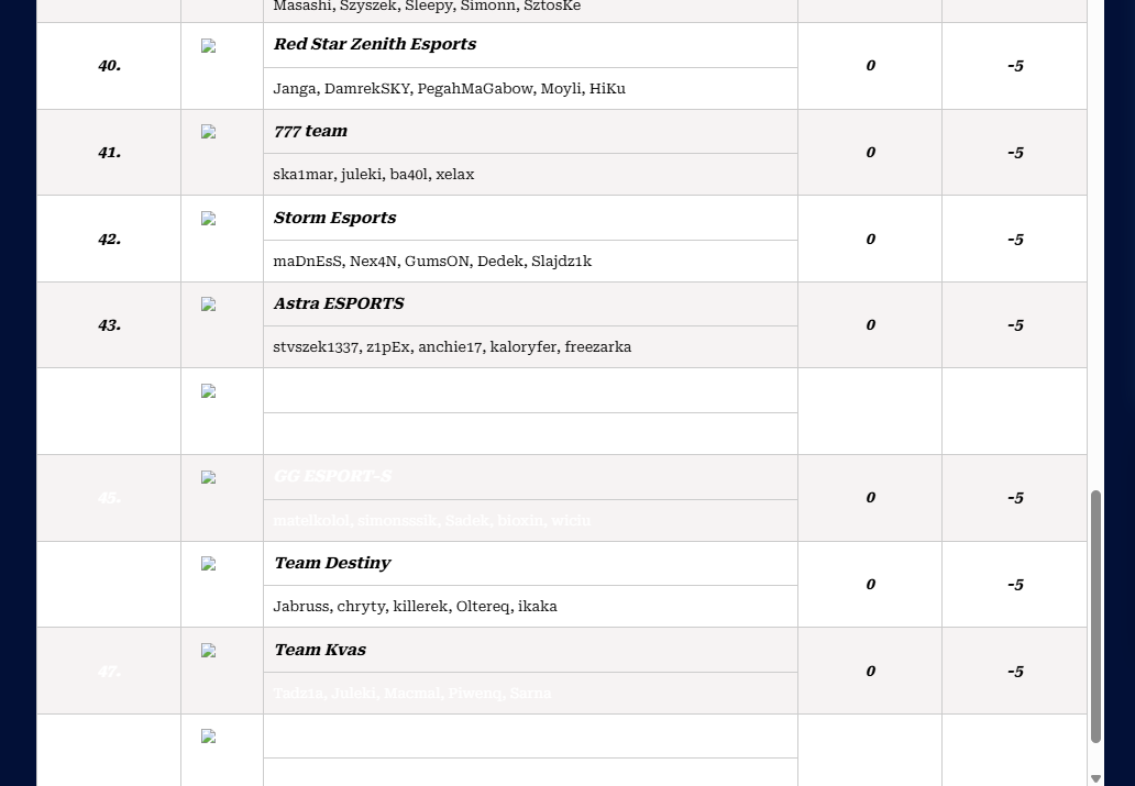 | 35. | ![]() | Red Star Zenith Esports | 0 | +1 |