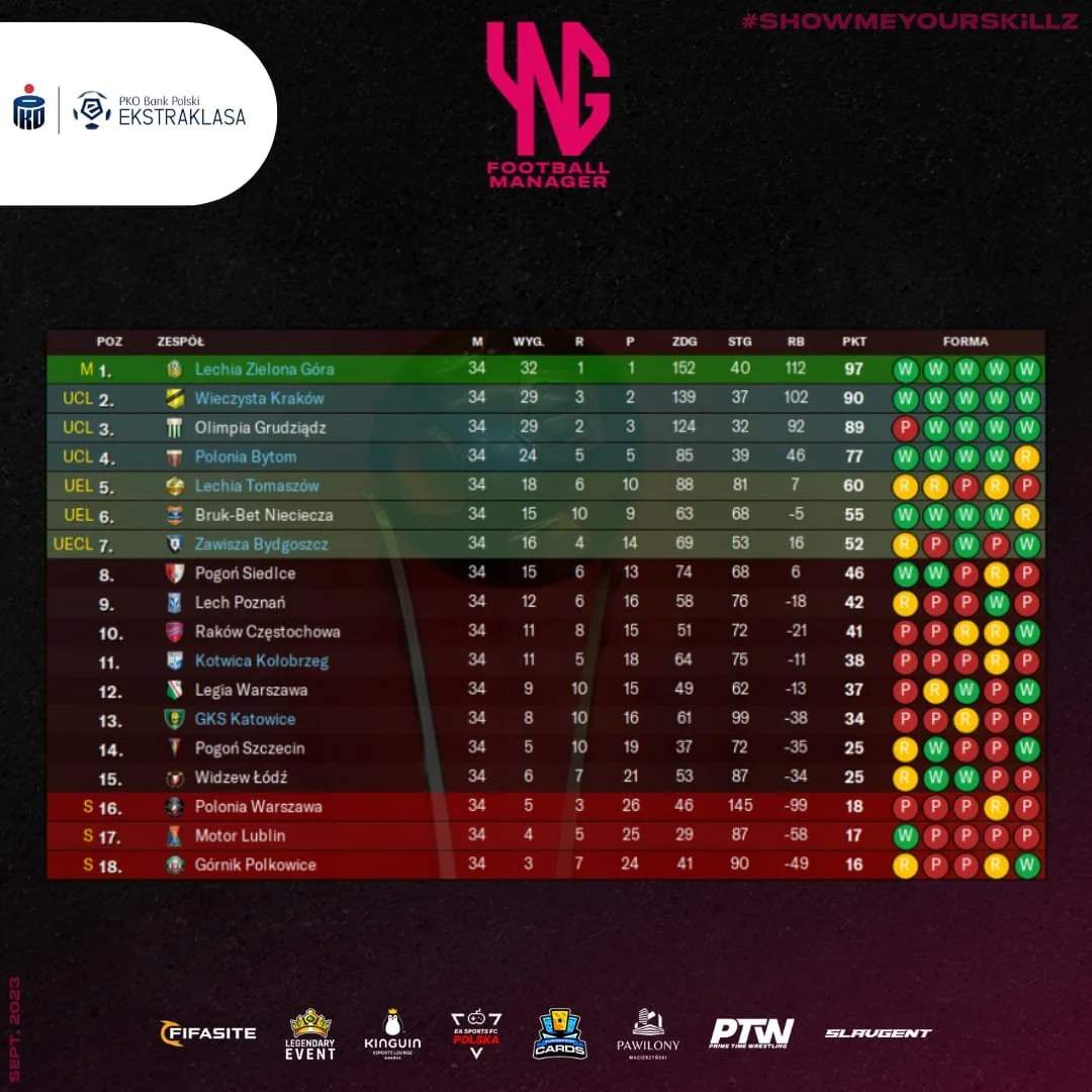 Odsłony Football Managera pozwalają na grę multiplayer różnymi klubami, nawet w różnych ligach. To co gracze kariery w EA Sports FC oczekują od EA Sports jest już od kilku lat w grze od Sports Interactive. Postanowiło to wykorzystać YNG SKiLLZ, które wpadło na pomysł, żeby zorganizować ligę dla Polskich graczy, którzy będą mogli poprowadzić swój klub ku chwale w Ekstraklasie. Mecze rozgrywane są w najnowszej odsłonie FM’a – Football Manager 2024. Liga YNG obejmuje łącznie cztery ligi: